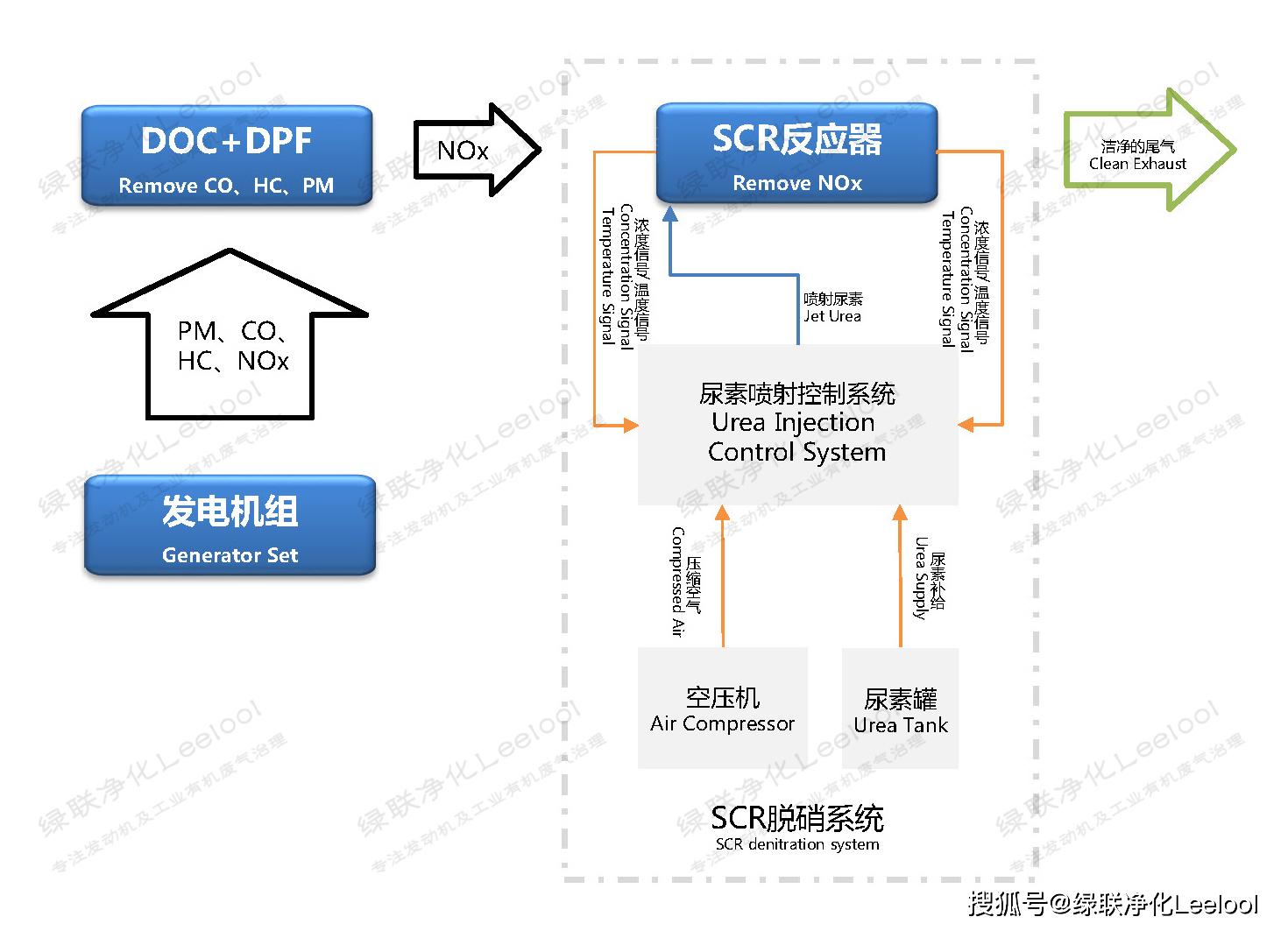 二、綠聯(lián)凈化柴油發(fā)電機(jī)組尾氣雙降系統(tǒng)簡(jiǎn)介(DPF+SCR)